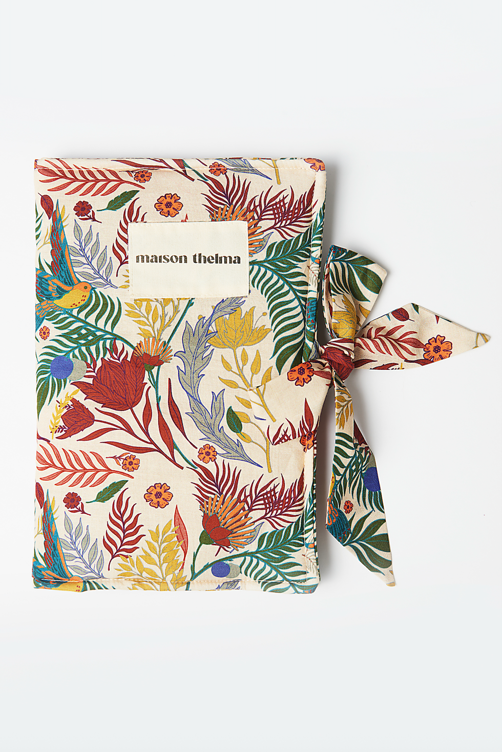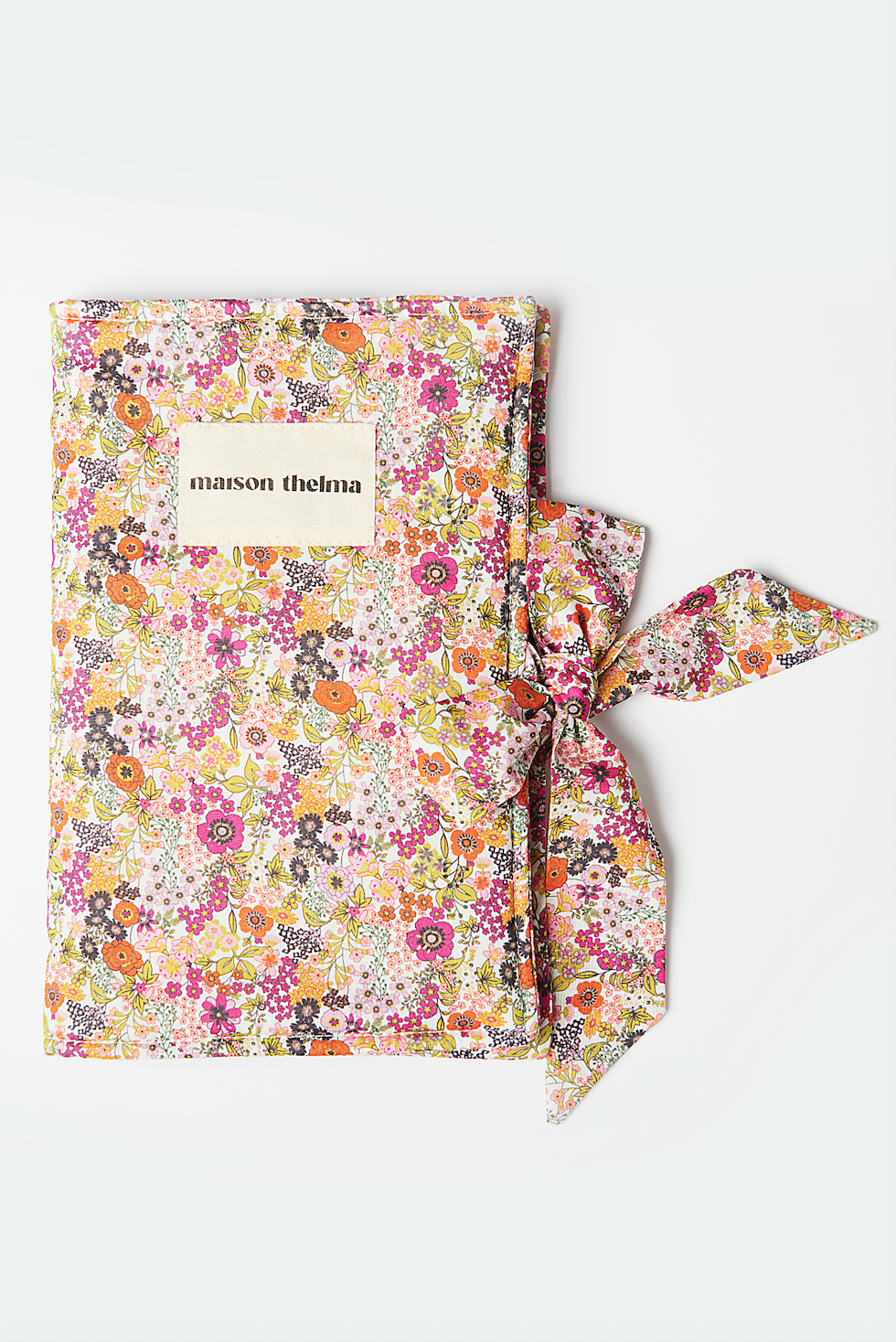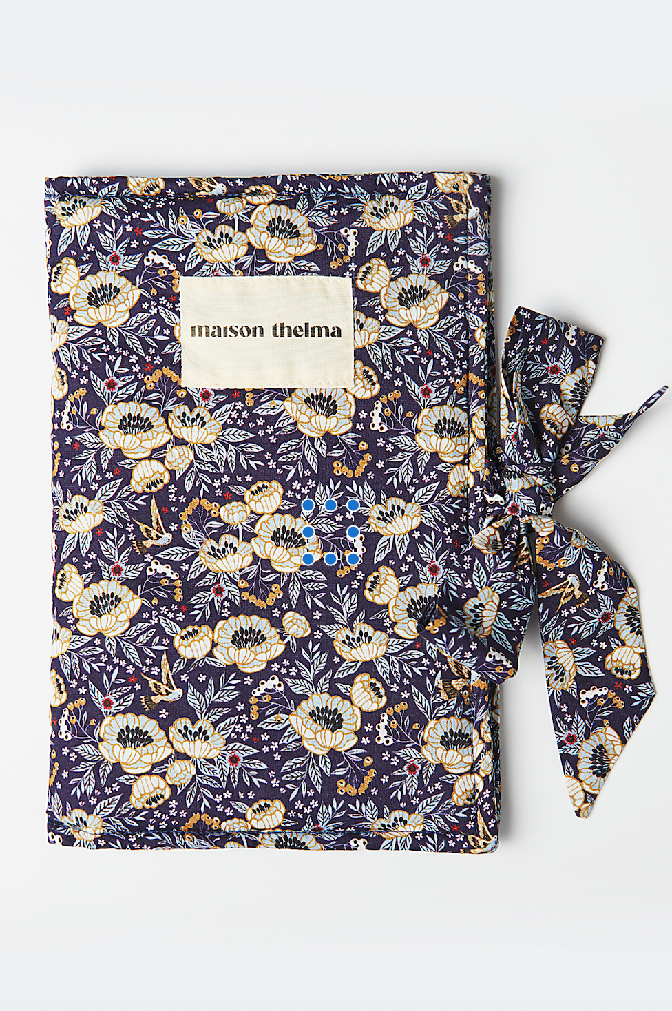 La popeline imprimée avec les motifs exclusifs Maison Thelma est fabriquée à la demande tout comme les pièces de notre vestiaire.